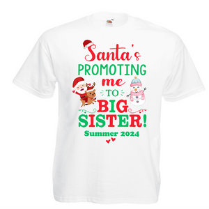 Grow your family with this playful Big Sister/Brother Christmas T-Shirt; the perfect (un)sibling announcement gift! This personalised tee comes complete with an adorable holiday-themed design that will have them ready for Christmas morning. Get ready to make some memories this season!