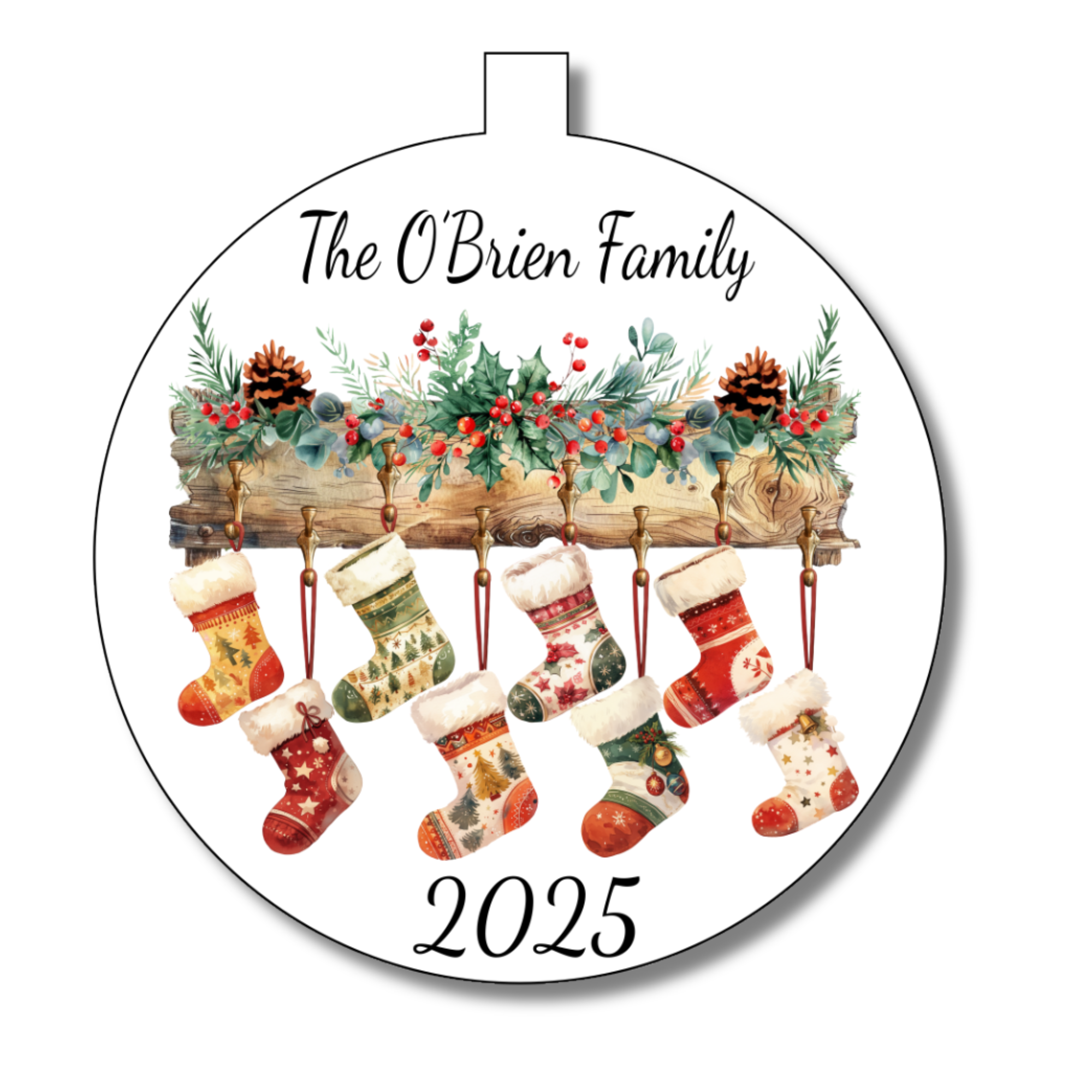 Bring joy to your holiday décor with this Family Christmas Stocking Bauble Decoration! Personalise it with up to nine names, making it a charming keepsake that highlights your loved ones. Perfect for hanging on the tree or stocking, this festive bauble adds a playful, heartfelt touch to your Christmas celebrations.