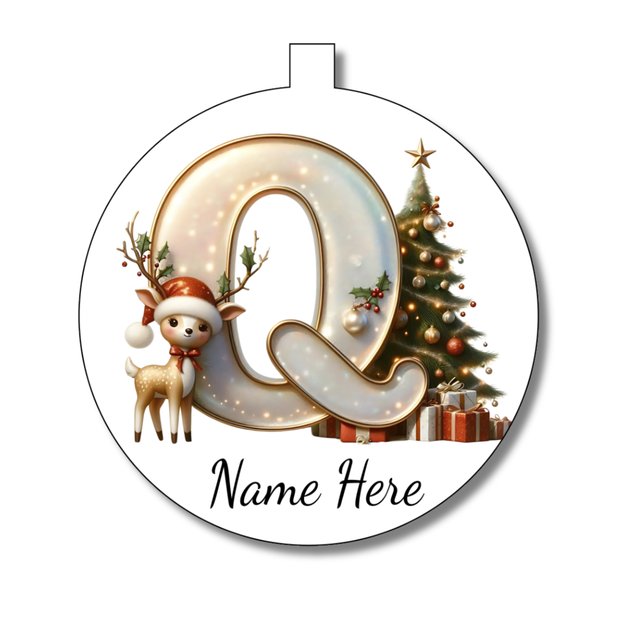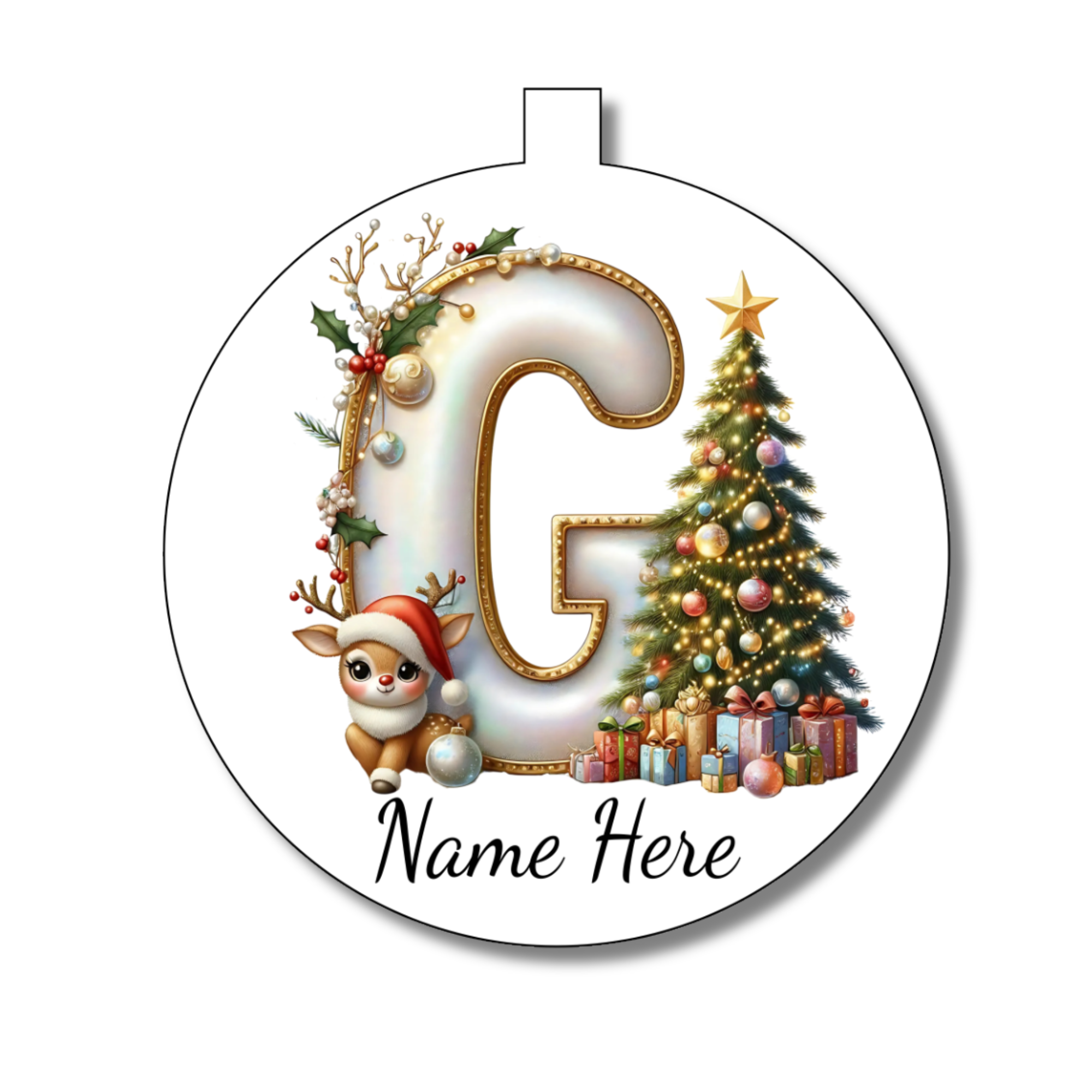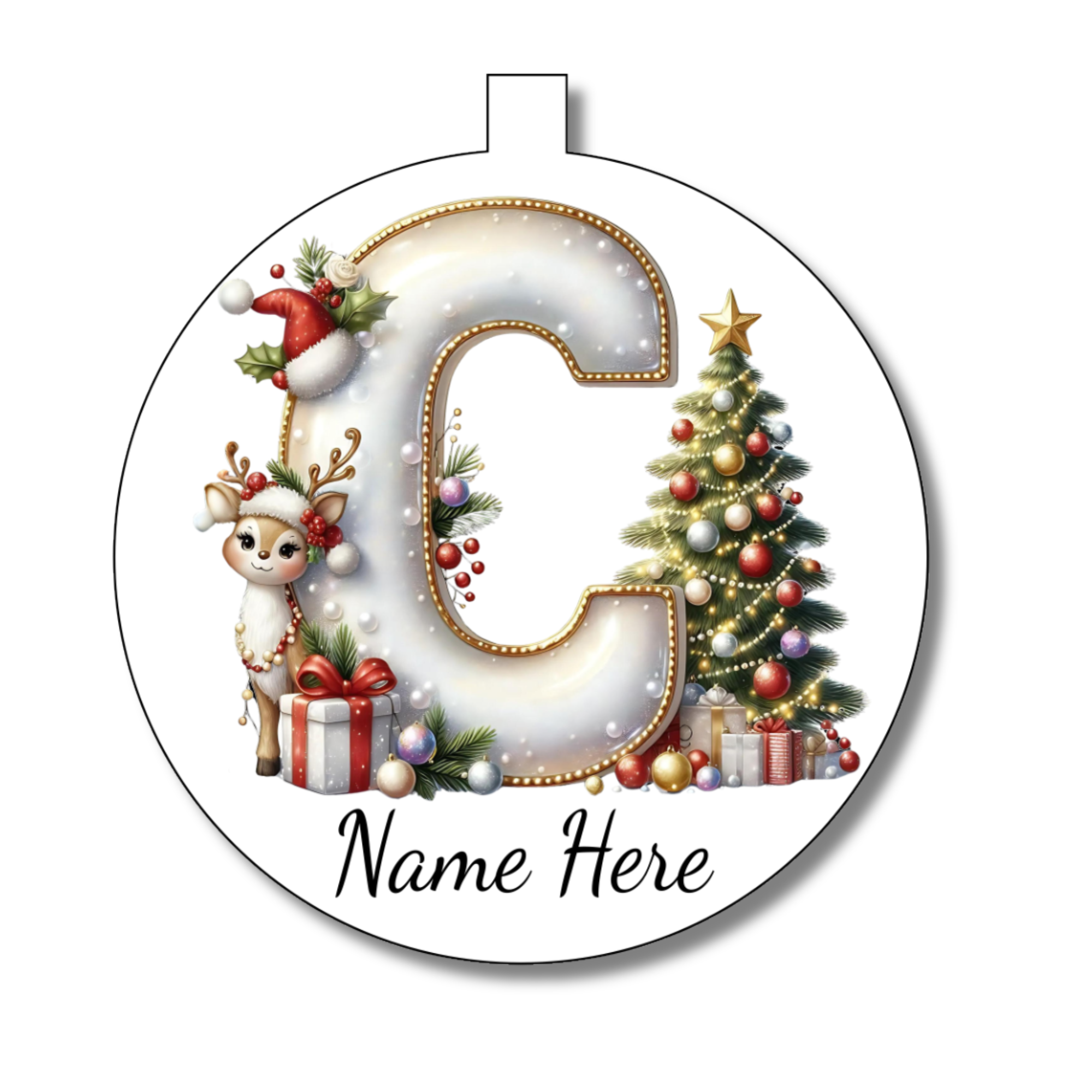 Add a splash of sparkle and personality to your festive décor with this Gold/White Alphabet Bauble. Customise it with your chosen letter and name to make a truly unique gift or a cheeky ornament for your own tree. Its shimmering gold and white design catches the eye and spreads holiday cheer with every glance. Perfect for gifting or keeping, this bauble turns simple decoration into a playful celebration of the season.