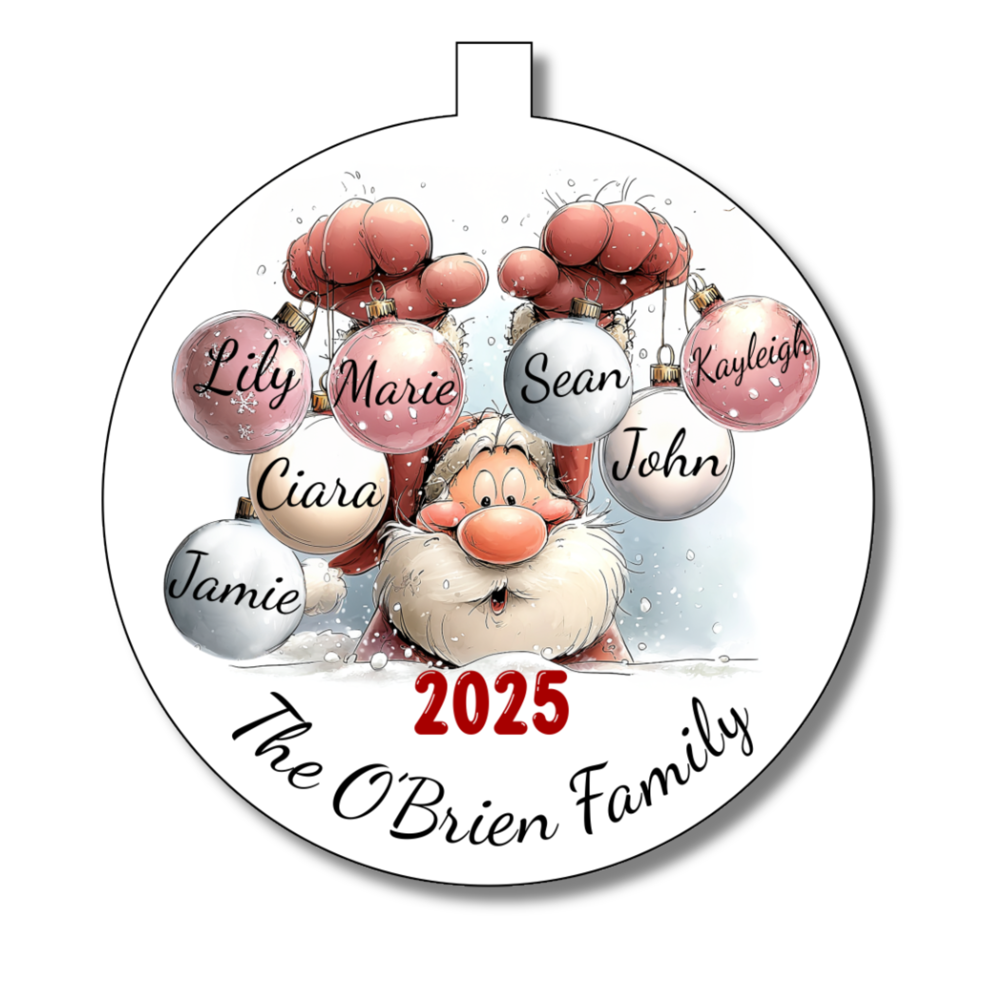Bring festive cheer to your Christmas tree with this Santa Family Christmas Bauble! Personalised with up to 8 names, it’s a playful way to celebrate your loved ones all in one sparkling keepsake. Perfect for creating joyful memories and adding a fun, personal touch to your holiday décor.