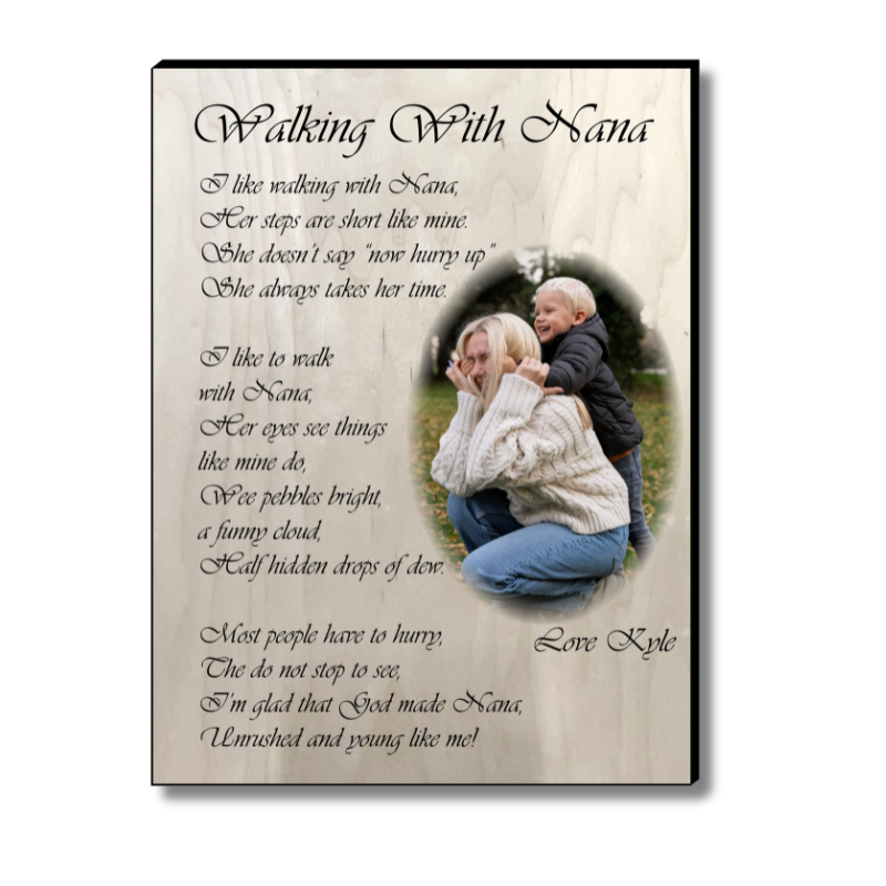 Celebrate those special strolls with Nana with this charming personalised MDF panel. Perfect for displaying cherished memories, this wall-mounted keepsake captures the joy of your walks together in a fun, heartfelt way. Customise it with names or dates to make it uniquely yours. A delightful gift that brings smiles every time you pass by—ideal for Nana's space or your own home.